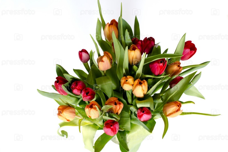 Букет из тюльпанов на белом фоне