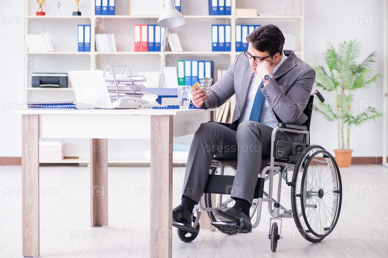 Инвалидный бизнесмен, работающий в офисе