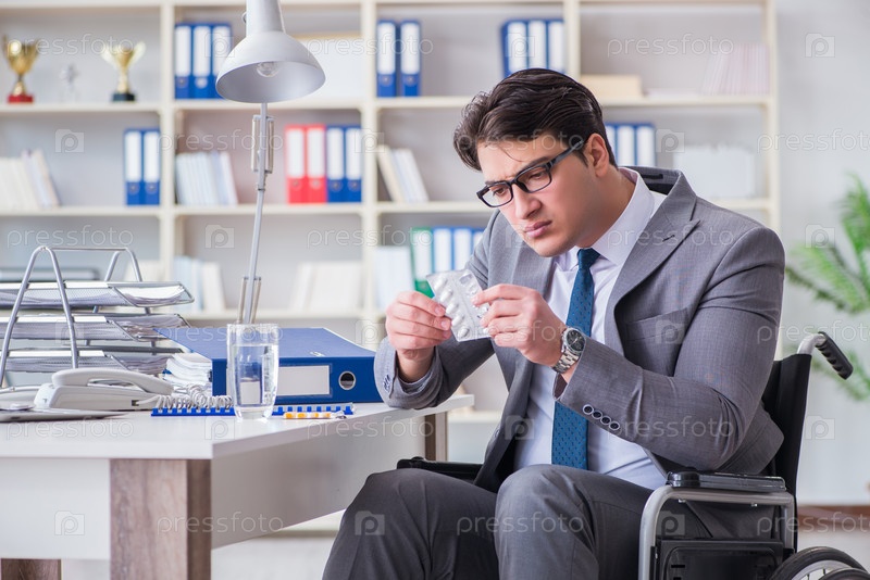 Инвалидный бизнесмен, работающий в офисе