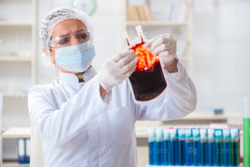 Женщина-врач проверяет образцы крови в лаборатории