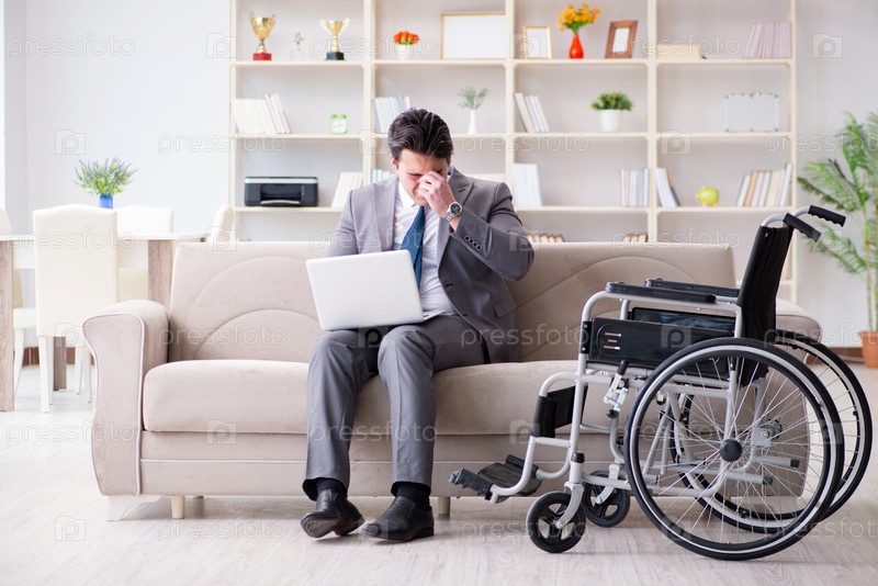 Инвалидный бизнесмен на инвалидном кресле, работающий из дома