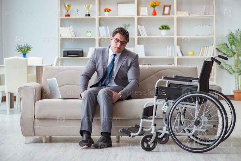 Инвалидный бизнесмен на инвалидном кресле, работающий из дома