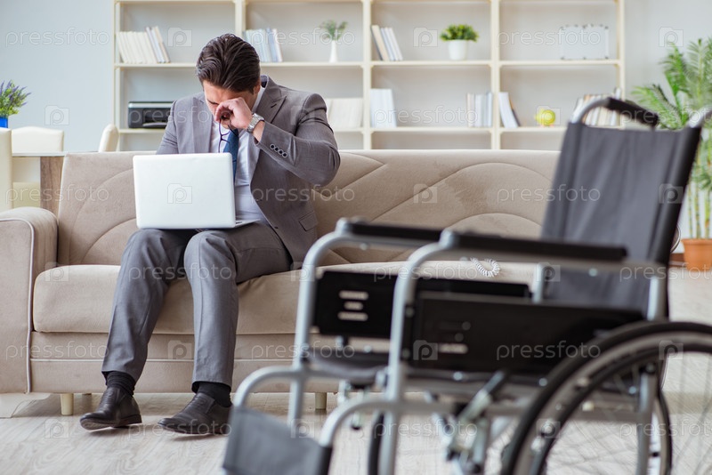 Инвалидный бизнесмен на инвалидном кресле, работающий из дома