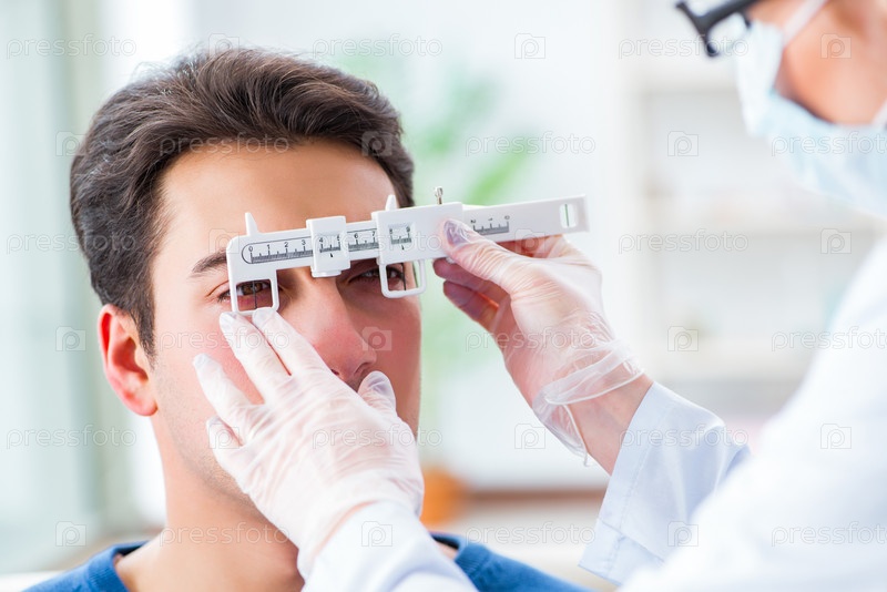 Офтальмолог осматривает пациента в глазной больнице