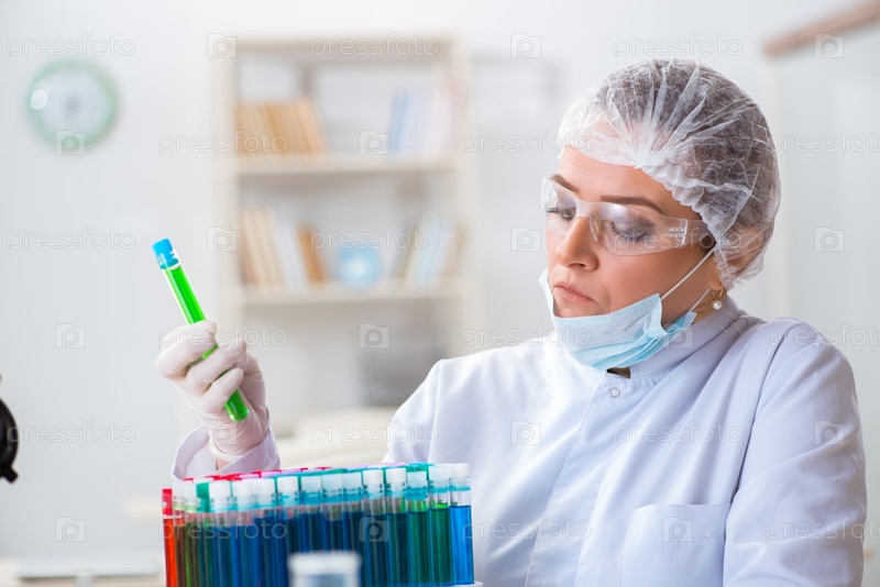 Женщина-химик, работающая в лаборатории больничной клиники