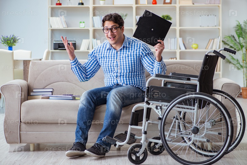 Молодой студент на инвалидной коляске в концепции инвалидности