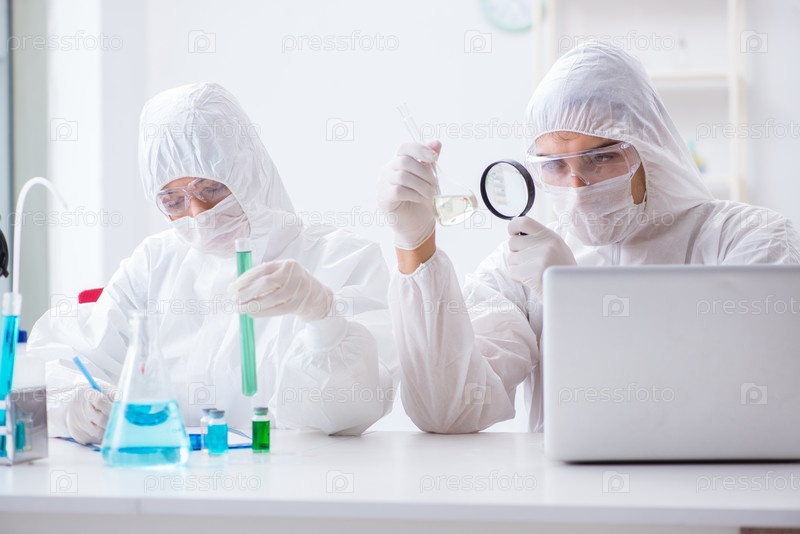 Два ученых работают в химической лаборатории