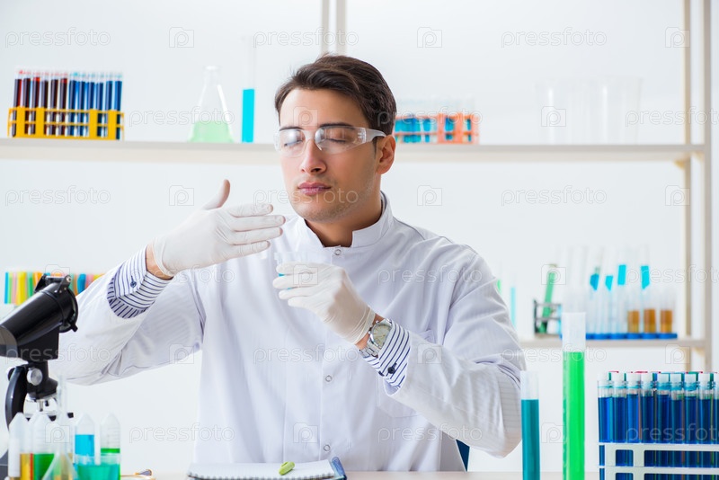 Молодой студент-химик, работающий в лаборатории по химическим веществам