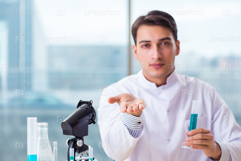 Молодой студент-химик, работающий в лаборатории по химическим веществам