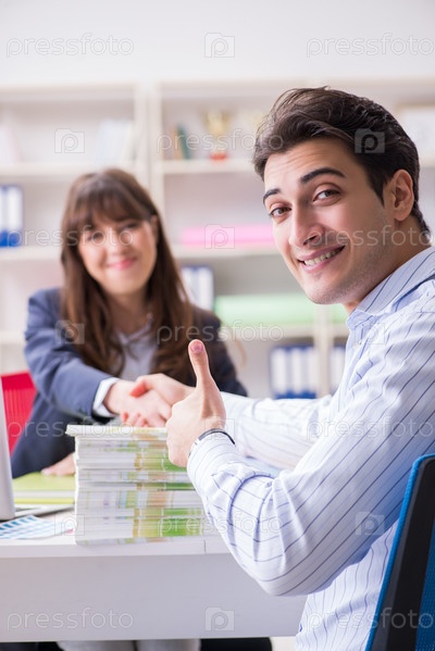 Пулишер обсуждает заказ книг с клиентом