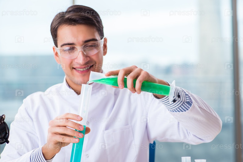 Молодой студент-химик, работающий в лаборатории по химическим веществам