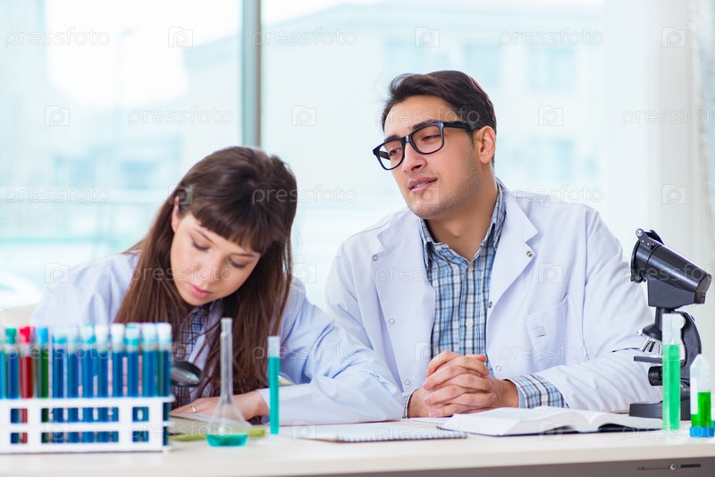 Два химика, работающих в лаборатории, экспериментируют