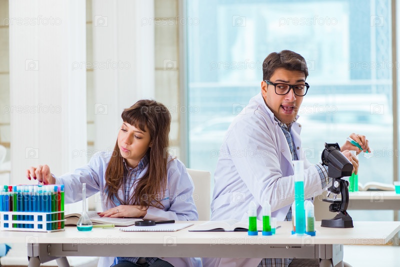 Два химика, работающих в лаборатории, экспериментируют