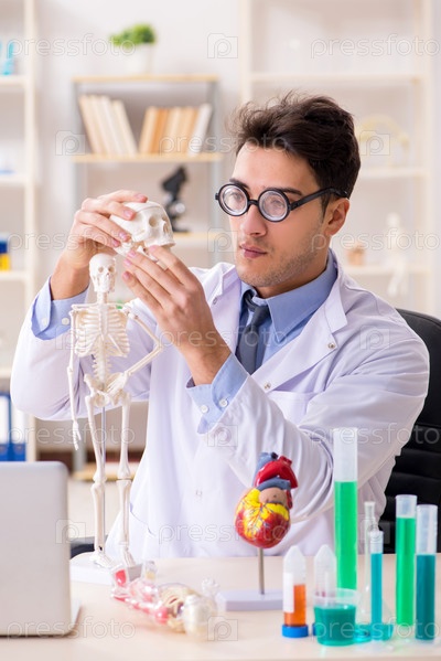 Смешный врач, развлекающийся в больничной лаборатории