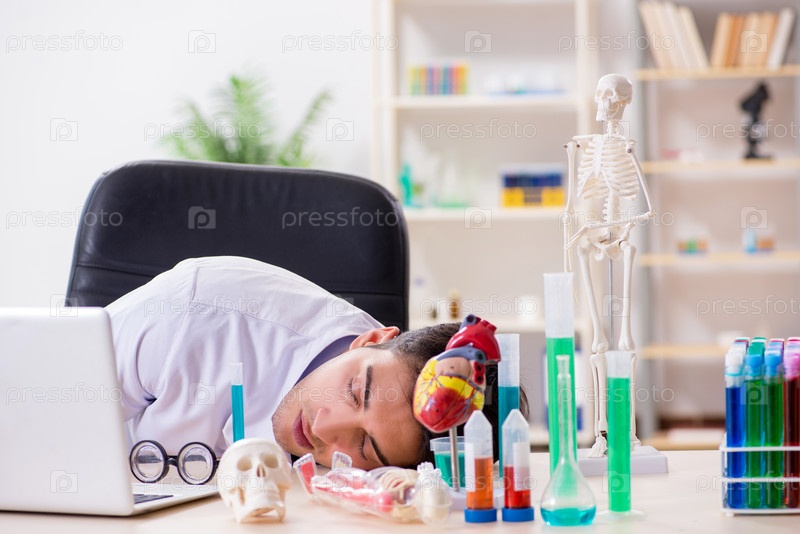 Смешный врач, развлекающийся в больничной лаборатории