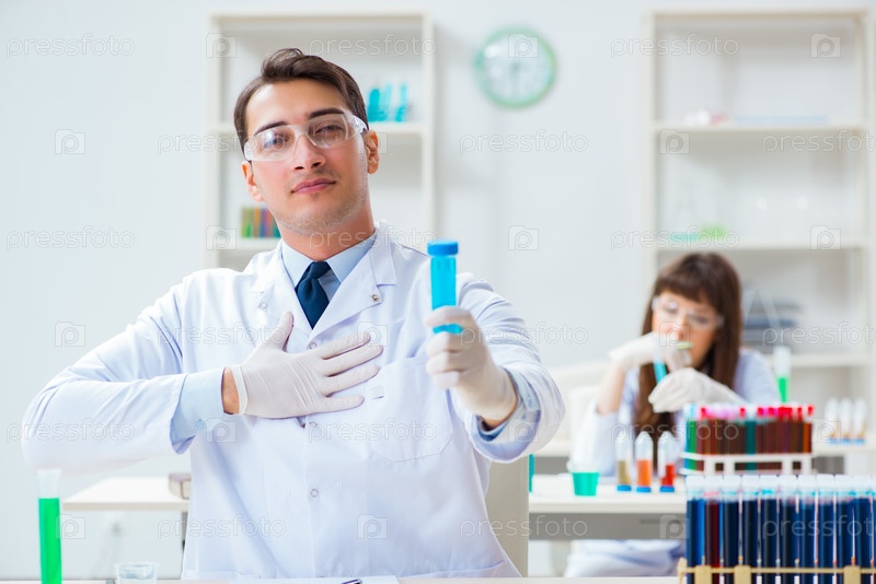 Два химика, работающих в лаборатории, экспериментируют