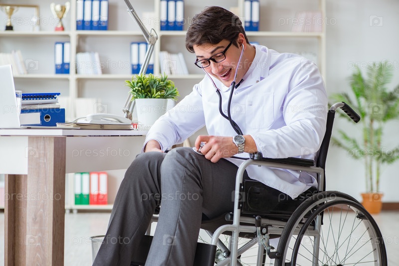 Врач-инвалид на инвалидной коляске работает в больнице