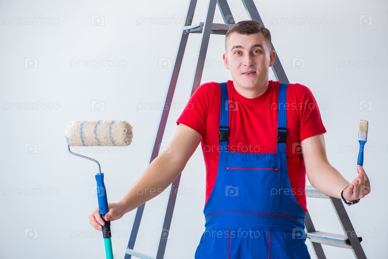 Мужской художник, готовящийся к работе по покраске на строительной площадке