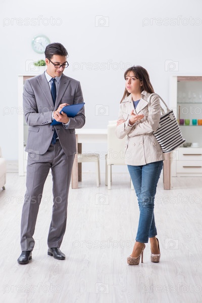 Агент по недвижимости показывает клиенту новую квартиру