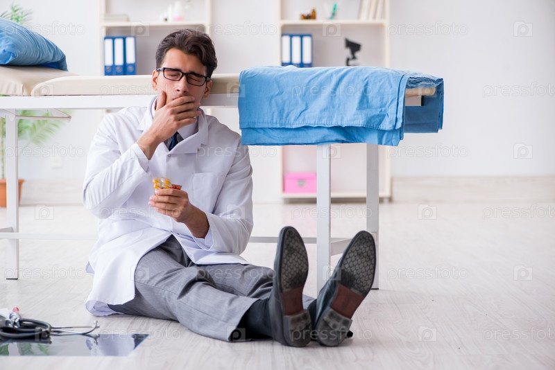 Врач сидит на полу в больнице