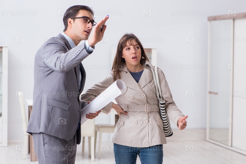 Агент по недвижимости показывает клиенту новую квартиру