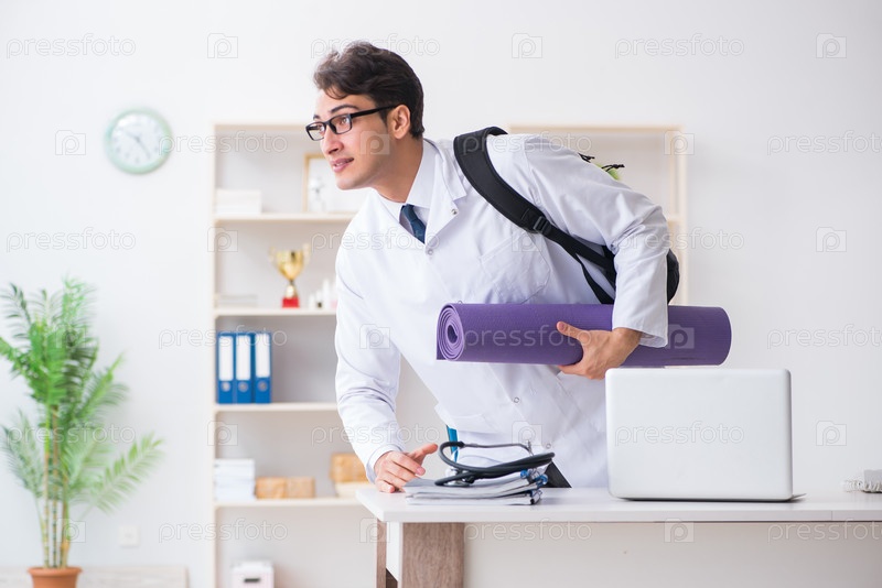 Доктор ходит в спортзал во время обеденного перерыва