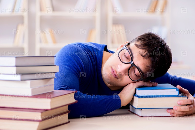 Студент-мужчина готовится к экзаменам в библиотеке колледжа