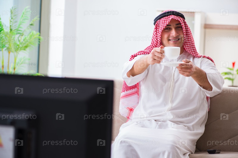 Арабский бизнесмен смотрит телевизор дома