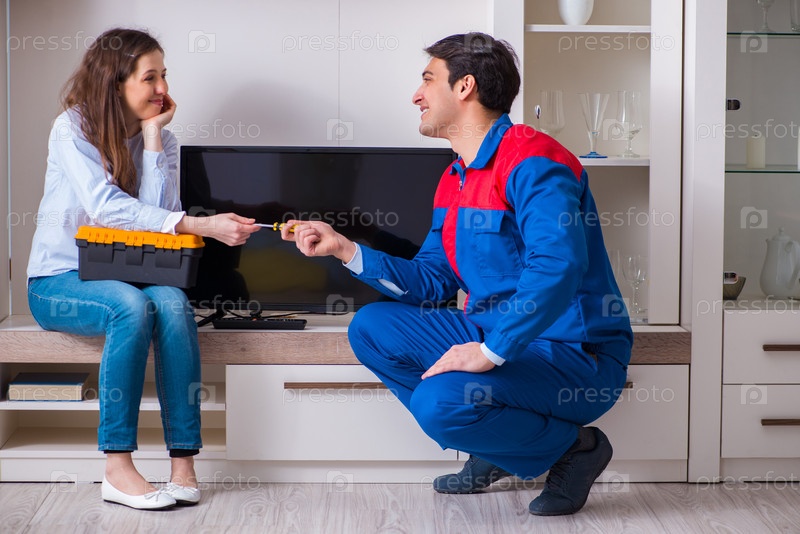 Ремонтник, ремонтирующий телевизор дома