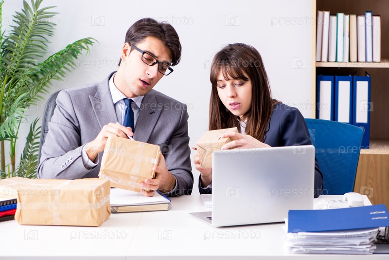 Бизнесмены, получающие новую почту и посылки
