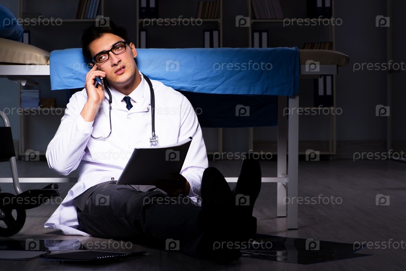 Врач работает в ночной смене в больнице после долгих часов