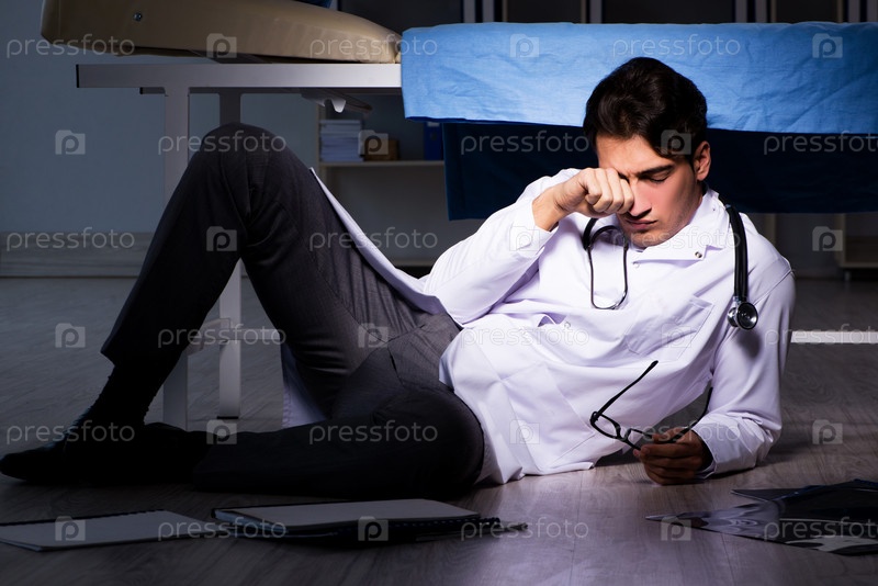 Врач работает в ночной смене в больнице после долгих часов