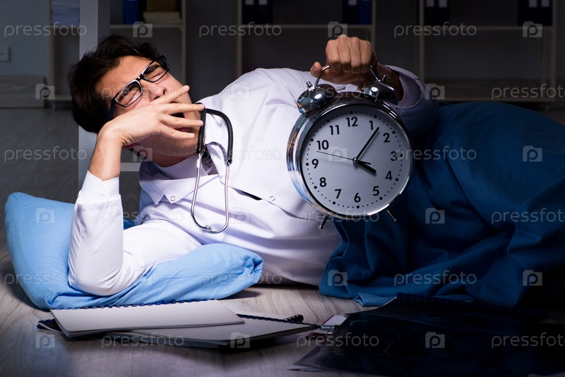 Врач работает в ночной смене в больнице после долгих часов