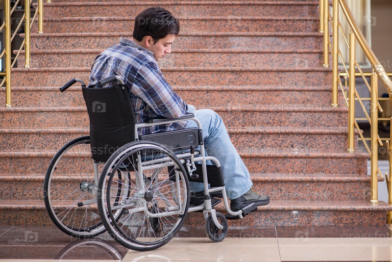 Инвалид на инвалидной коляске испытывает проблемы с лестницей
