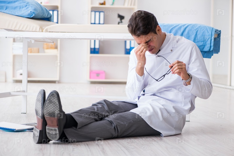 Врач сидит на полу в больнице