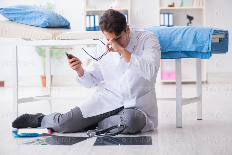 Врач сидит на полу в больнице