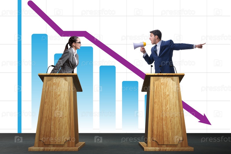 Бизнесмен выступает с речью на трибуне в бизнес-концепции