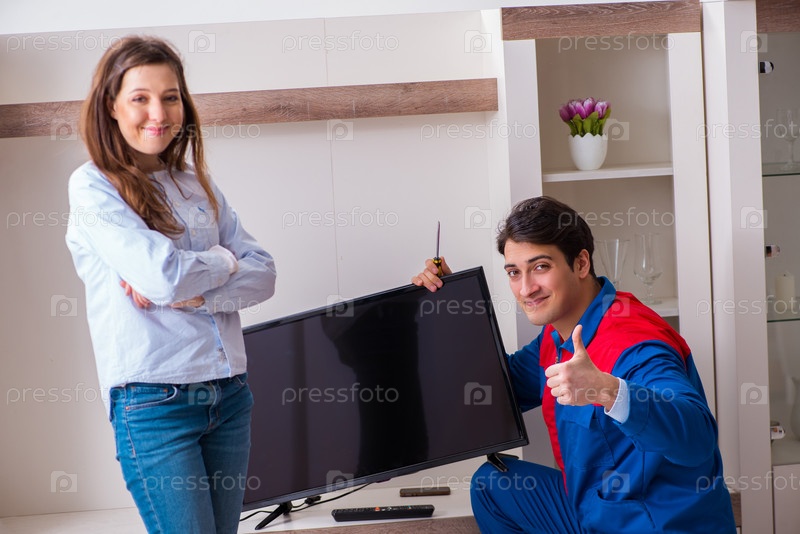 Ремонтник, ремонтирующий телевизор дома