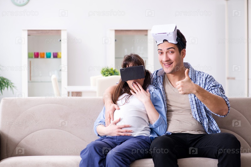 Молодая пара пробует очки виртуальной реальности