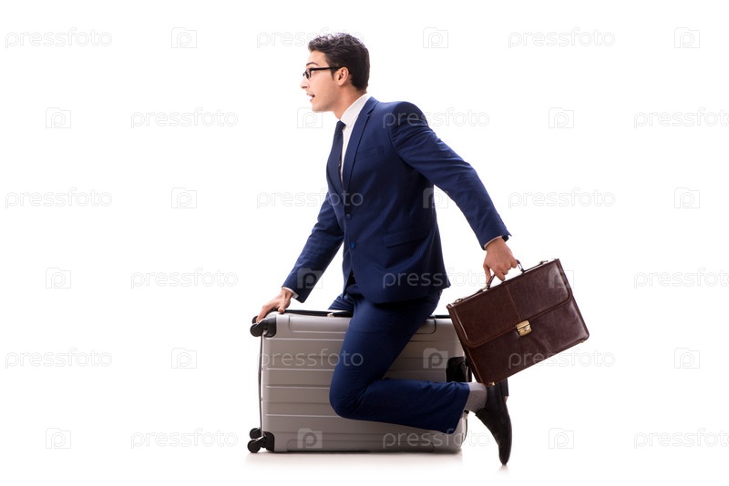 Бизнесмен в бизнес-путешествиях концепция изолирована на белом