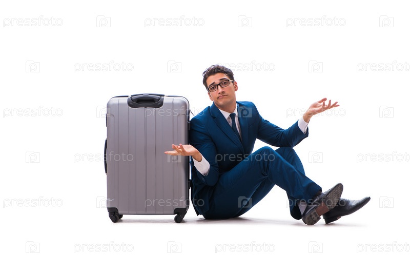 Бизнесмен в бизнес-путешествиях концепция изолирована на белом