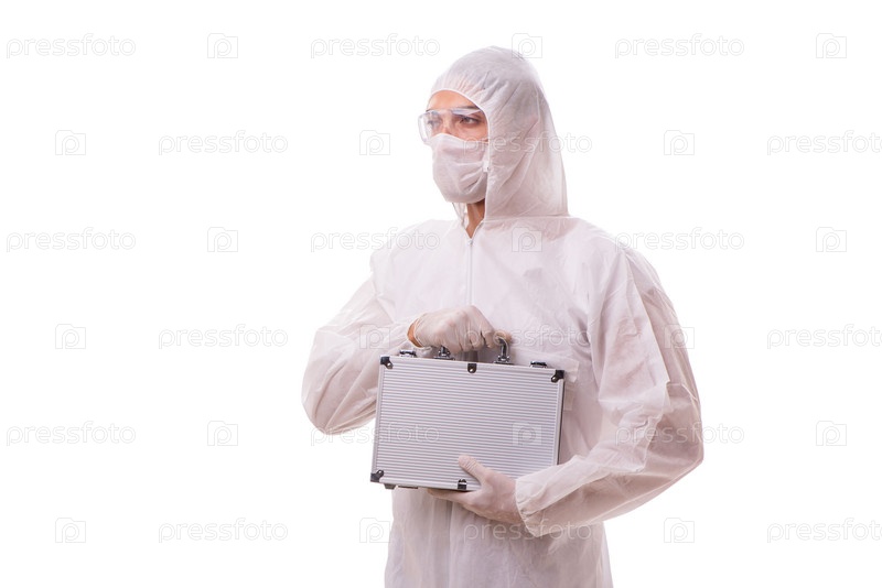 Криминолог в защитном костюме со стальным корпусом