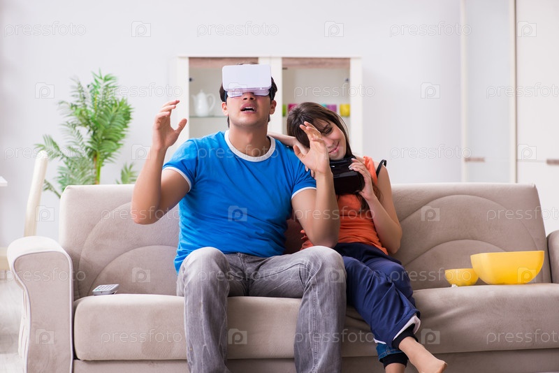 Мужчина смотрит футбол на VR-очках виртуальной реальности