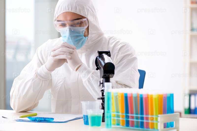 Молодой студент-химик, работающий в лаборатории по химическим веществам