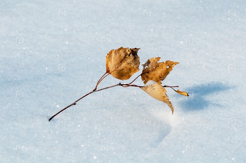 Березовые листья на снегу