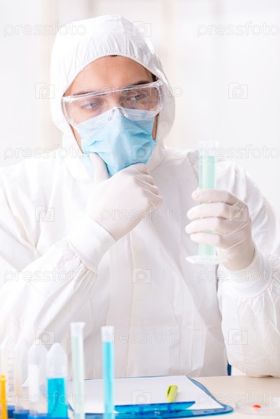Молодой студент-химик, работающий в лаборатории по химическим веществам