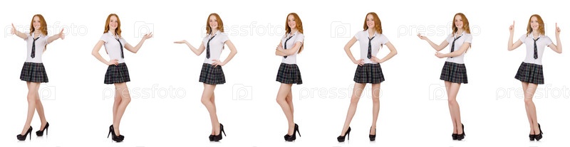Молодая студентка-женщина, содержащаяся в изоляции на белом