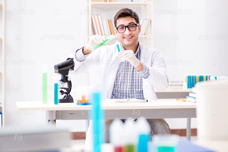 Студент химии проводит химические эксперименты на занятиях в классе