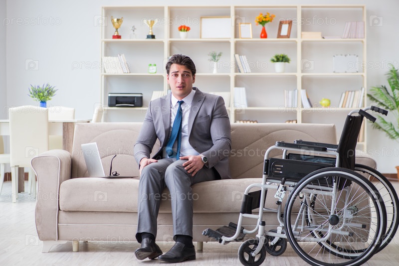 Инвалидный бизнесмен на инвалидном кресле, работающий из дома