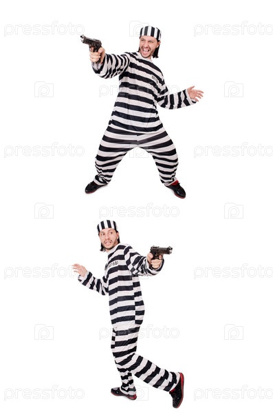 Заключенный с оружием изолирован на белом